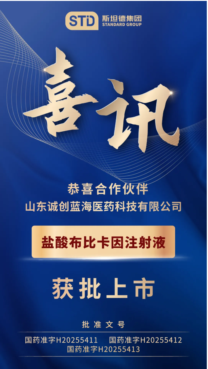 近日,斯坦德生物醫(yī)藥成功助力山東誠(chéng)創(chuàng)藍(lán)海醫(yī)藥科技有限公司(以下簡(jiǎn)稱“山東誠(chéng)創(chuàng)藍(lán)海”)申報(bào)的鹽酸布比卡因注射液獲批上市。