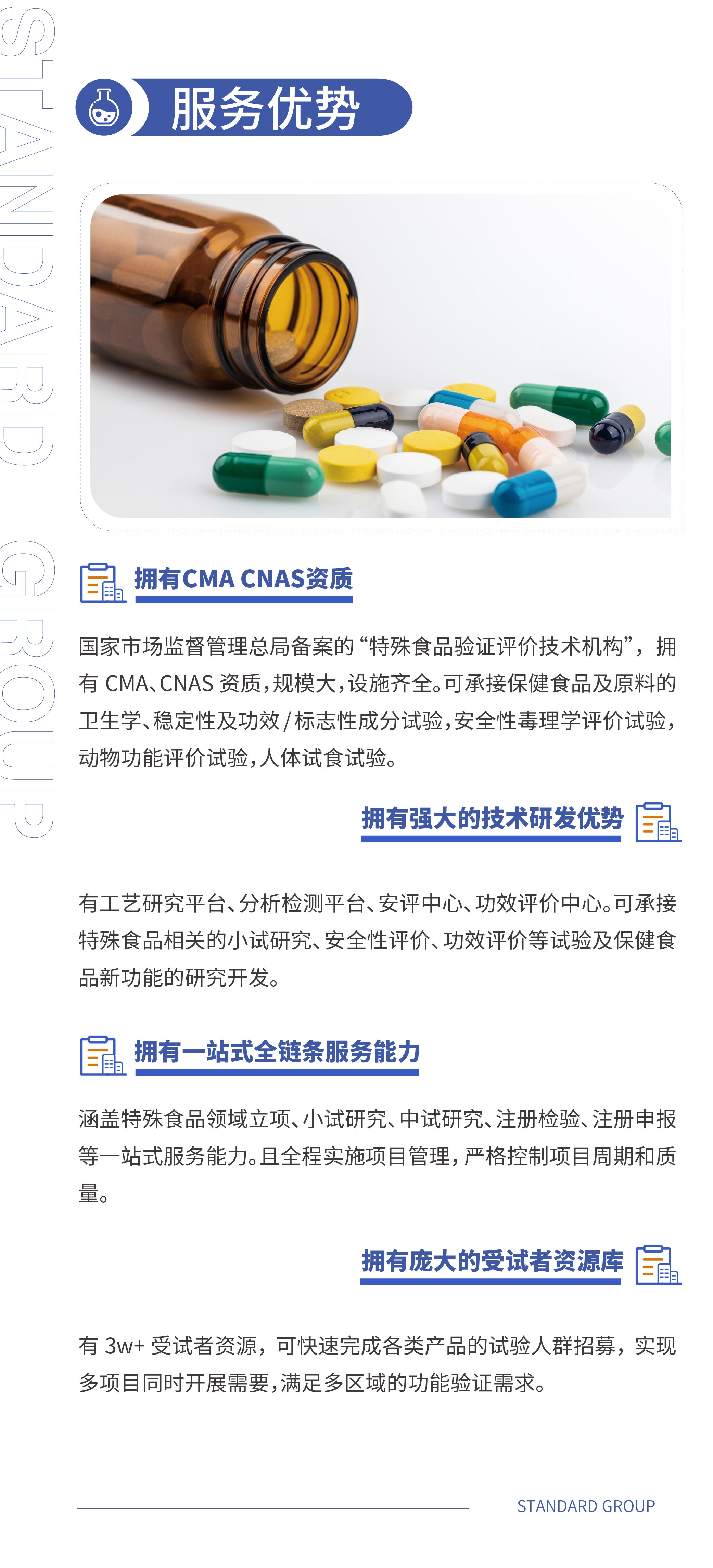 生命科學(xué)是斯坦德集團(tuán)長期深耕的核心領(lǐng)域之一,服務(wù)范圍涵蓋特殊食品、化妝品、消毒產(chǎn)品、涉水產(chǎn)品以及科研服務(wù)等領(lǐng)域,資質(zhì)能力包括CMA、CNAS、ISO 9001質(zhì)量管理體系認(rèn)證以及實(shí)驗(yàn)動物使用許可證等,是國家市場監(jiān)督管理總局備案的特殊食品驗(yàn)證評價技術(shù)機(jī)構(gòu)、國家藥品監(jiān)督管理局備案通過的化妝品注冊和備案檢驗(yàn)機(jī)構(gòu)、中國標(biāo)準(zhǔn)化研究院水效標(biāo)識管理中心許可的水效標(biāo)識備案檢測實(shí)驗(yàn)室、青島市行政審批服務(wù)局備案的病原微生物實(shí)驗(yàn)室??商峁┖w安全評價測試、動物功能試驗(yàn)、人體試食試驗(yàn)、人體功效測試、產(chǎn)品注冊和備案檢驗(yàn)及多組學(xué)技術(shù)測試、多糖結(jié)構(gòu)解析、動物建模、分子生物學(xué)測試、基礎(chǔ)分析測試等生命科學(xué)領(lǐng)域的科研檢測及課題外包服務(wù)。斯坦德生命科學(xué),助力加快健康美麗產(chǎn)品上市,為品質(zhì)生活事業(yè)保駕護(hù)航。