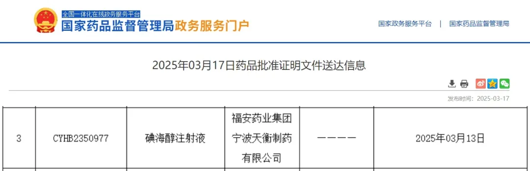 近日,斯坦德科創(chuàng)成功助力福安藥業(yè)集團寧波天衡制藥有限公司(以下簡稱“寧波天衡”)申報的碘海醇注射液獲批上市。