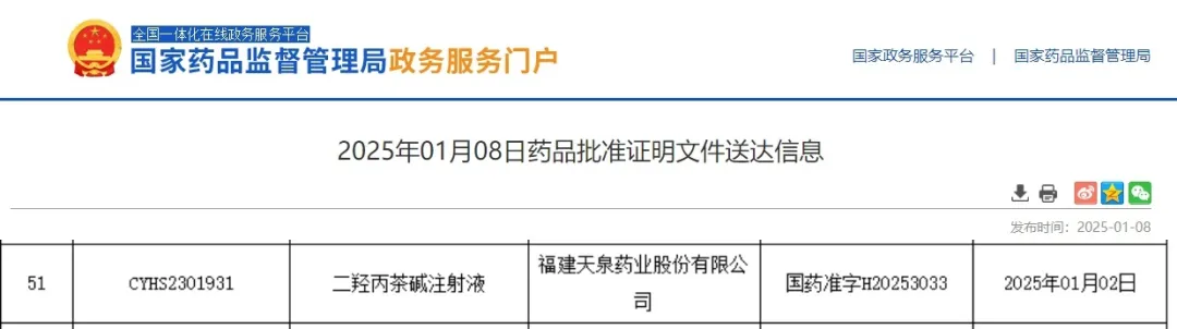 近日,斯坦德科創(chuàng)成功助力福建天泉藥業(yè)股份有限公司(以下簡稱“天泉藥業(yè)”)申報(bào)的二羥丙茶堿注射液獲批上市。