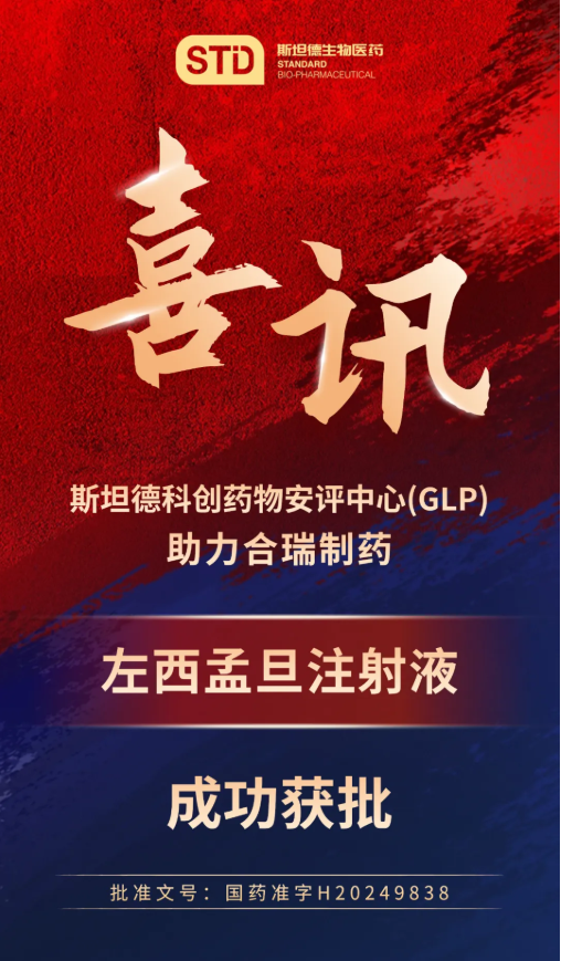 斯坦德科創(chuàng)藥物安評(píng)中心(GLP)為合瑞制藥左西孟旦注射液的上市申請(qǐng)獲批提供了安全性實(shí)驗(yàn)技術(shù)支持。斯坦德生物醫(yī)藥藥學(xué)實(shí)驗(yàn)室為其提供了多維度藥學(xué)研究支持。