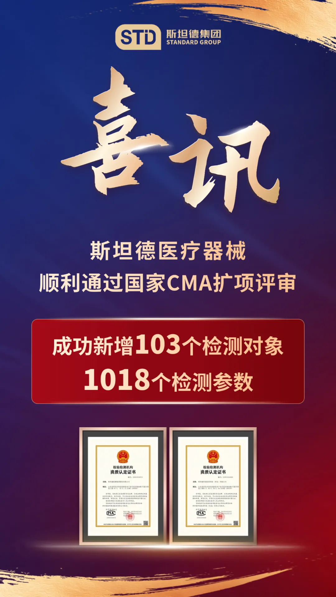 近日,斯坦德醫(yī)療器械順利通過國家認(rèn)證認(rèn)可監(jiān)督管理委員會CMA資質(zhì)擴(kuò)項(xiàng)評審,在有源醫(yī)療器械和無源醫(yī)療器械領(lǐng)域共新增103個(gè)檢測對象,涉及1018個(gè)檢測參數(shù)。新增能力范圍已于2025年9月5日正式生效。